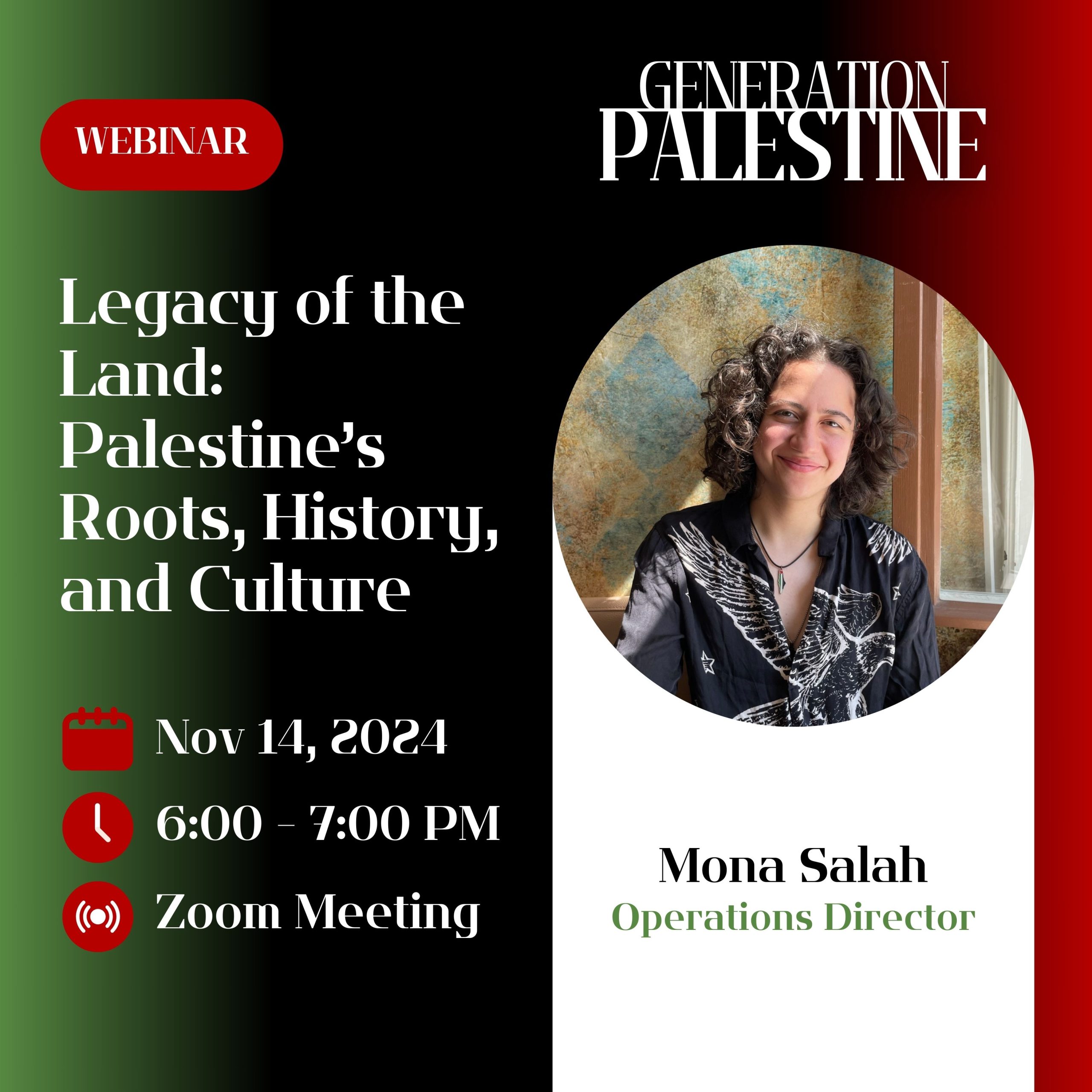 Join us on for an enriching webinar exploring the deep history and vibrant culture of Palestine. Dive into the origins of Palestinian identity, the impact of pivotal events like the Nakba and Intifada, and the enduring traditions that define this beautiful land. We’ll journey through Palestine’s geography, language, and literature, celebrate its music and traditional arts, and savor insights into its rich culinary heritage. This event will also highlight the resilience of Palestinian communities globally and examine the evolution of contemporary Palestinian art.